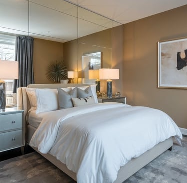 Mirrors are a designer's secret weapon for creating the illusion of space. Placing mirrors strategically, such as across from windows, helps reflect natural light and makes a room appear larger. Consider large mirrors or mirrored furniture for an added touch of elegance.